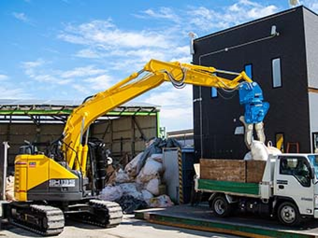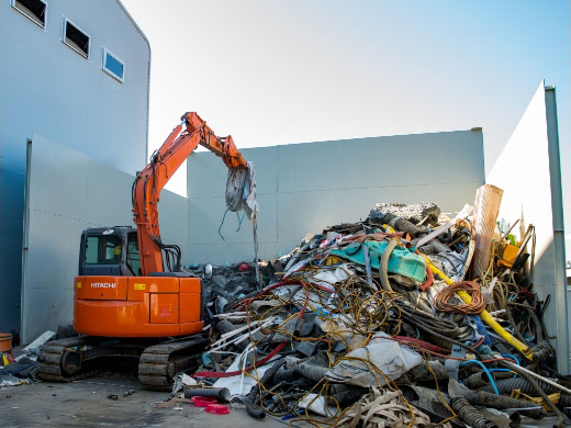 委託された産業廃棄物の品目に対して、 選別・圧縮梱包、破砕 による中間処理を実施しています。最終処理時の効率化が図れるよう、業法に基づいた適切な処理を行なっています。